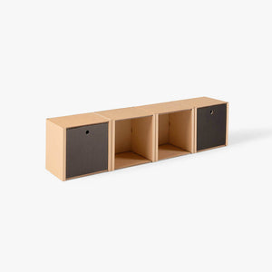 Ein schlichtes Lowboard bestehend aus vier miteinander verbundenen Grundmodulen, die du ganz nach deinem Bedarf mit Schubladen, Regalböden oder Türen bestücken kannst. Sollte dir der Platz nicht ausreichen, kannst du es durch weitere Module ergänzen. Bis zu sechs Module können übereinander gestapelt werden. In der Breite sind dir keine Grenzen gesetzt.