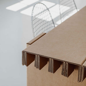 Möbel aus Wellpappe verursachen nur einen Bruchteil der CO2-Emissionen herkömmlicher Möbel.