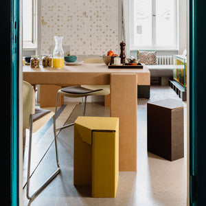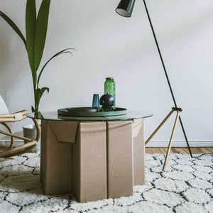 Die Grundlage all unserer Pappmöbel ist hochwertigste AVANA-Wellpappe, die für ein hohes Mass an Stabilität und eine lange Lebensdauer der Möbel sorgt. Das Material ist durch den hohen Recyclinganteil von 54 % bis 80 % sehr ressourcenschonend und wird ausschliesslich mit schadstofffreien Hilfsmitteln, wie lösungsmittelfreien Farben und veganem Stärkeleim weiterverarbeitet. So entstehen umweltfreundliche Möbel, die am Ende ihres Lebenszyklus einfach über die Altpapiertonne recycelt werden können.