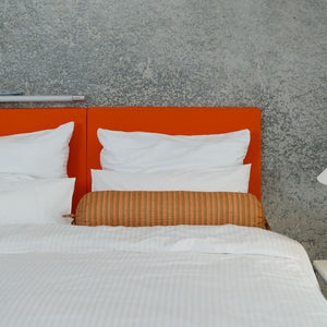 Das Bettkopfteil besteht im Kern aus 100 % Naturlatex, der aus FSC-zertifiziertem Anbau stammt. Als Bezug haben wir Recycling-PET gewählt, da es sowohl nachhaltig als auch äusserst strapazierfähig ist.
