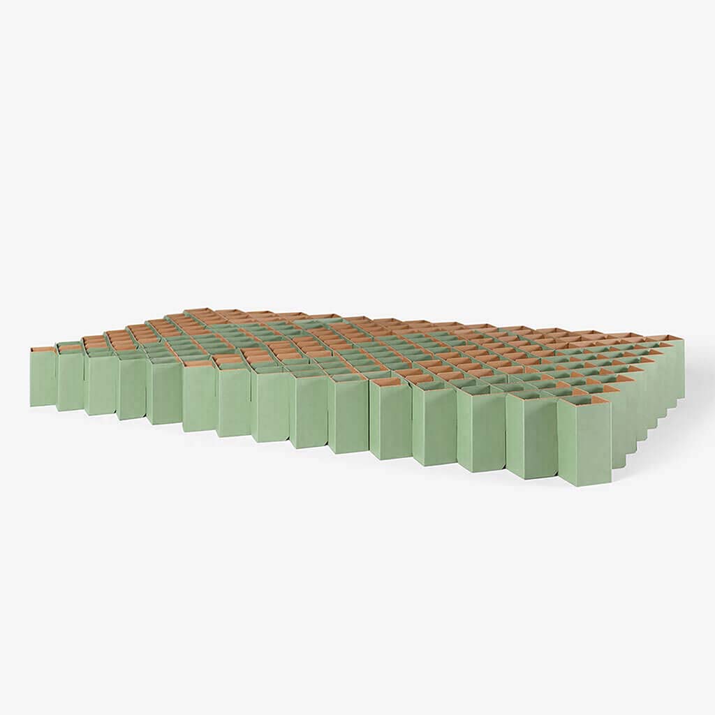 Ausgangsmaterial für alle RIAB Pappmöbel ist eine besondere Schwerlastpappe, die sich durch ihre hohe Qualität auszeichnet. In Verbindung mit einer durchdachten Konstruktion entstehen so stabile, langlebige und vor allem unkonventionelle Stücke. Bis zu vier Personen mit einem Körpergewicht von je 150 kg trägt das Bett 2.0 und hält auch ausgelassenen Tobestunden mühelos stand. Die Wellpappe hat aber noch einen ganz anderen Vorteil, der für uns von besonderer Bedeutung ist: Sie ist ökologisch nachhaltig.